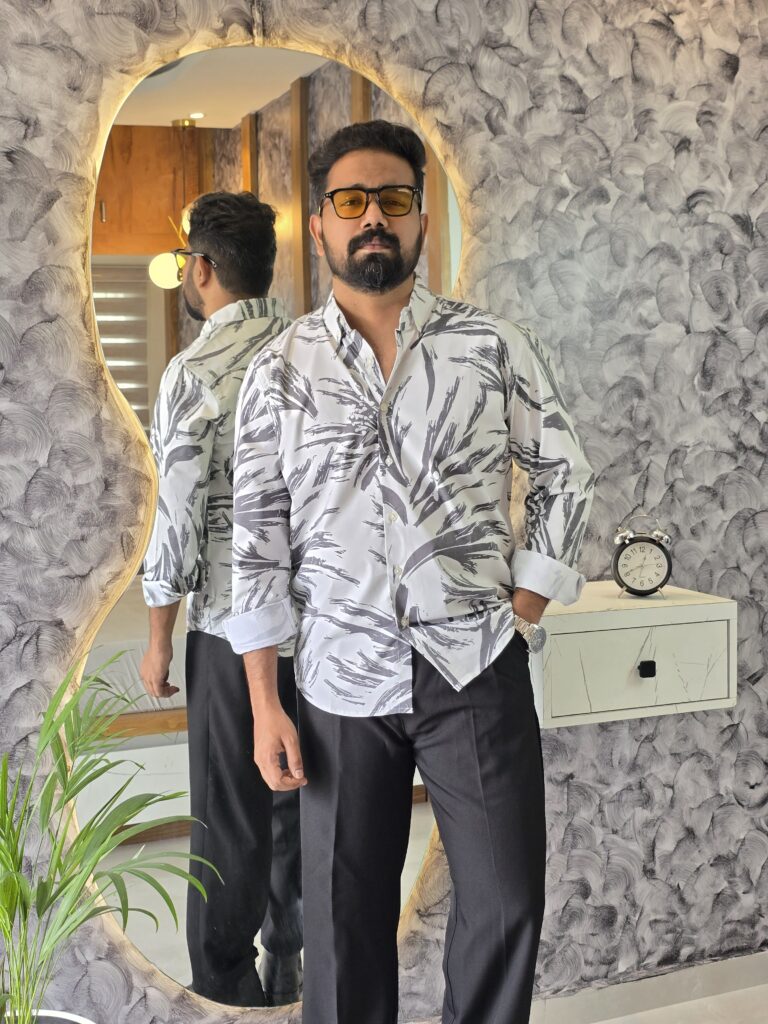 White & Black Satin digital printed shirts