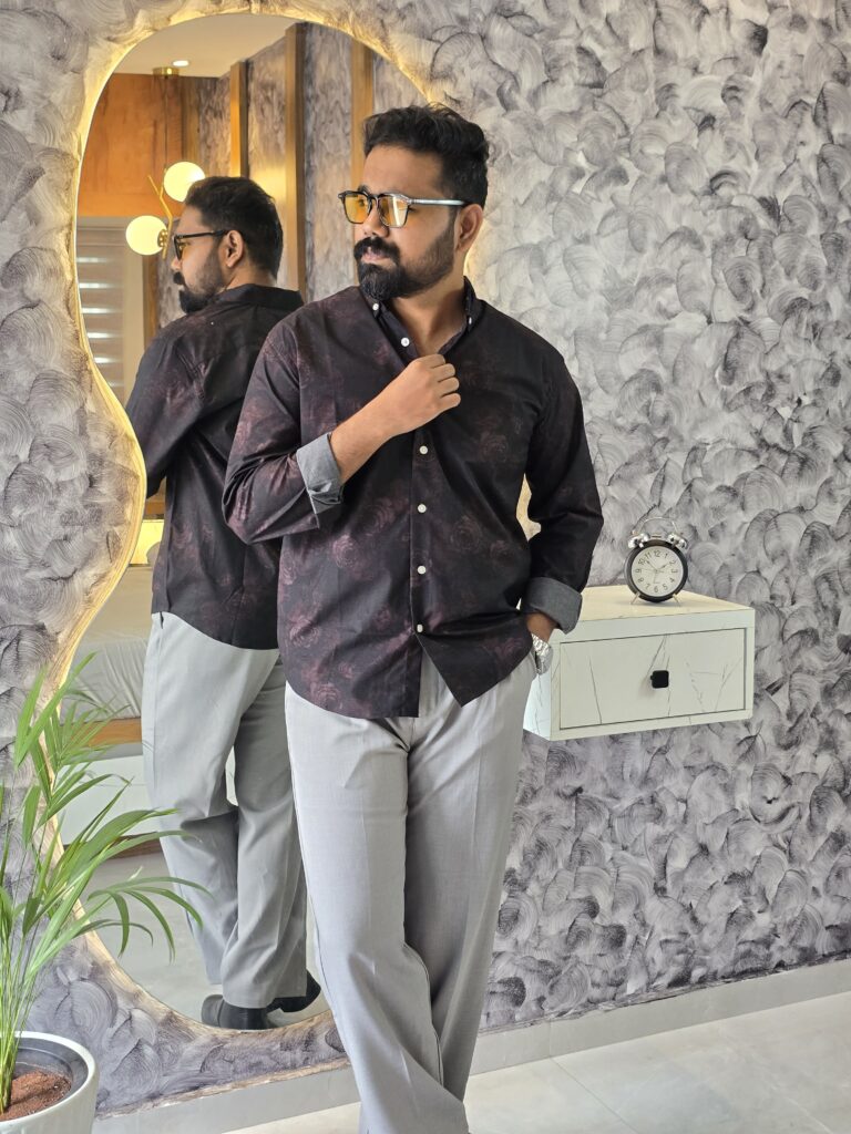 Black & Brown Satin digital printed shirt