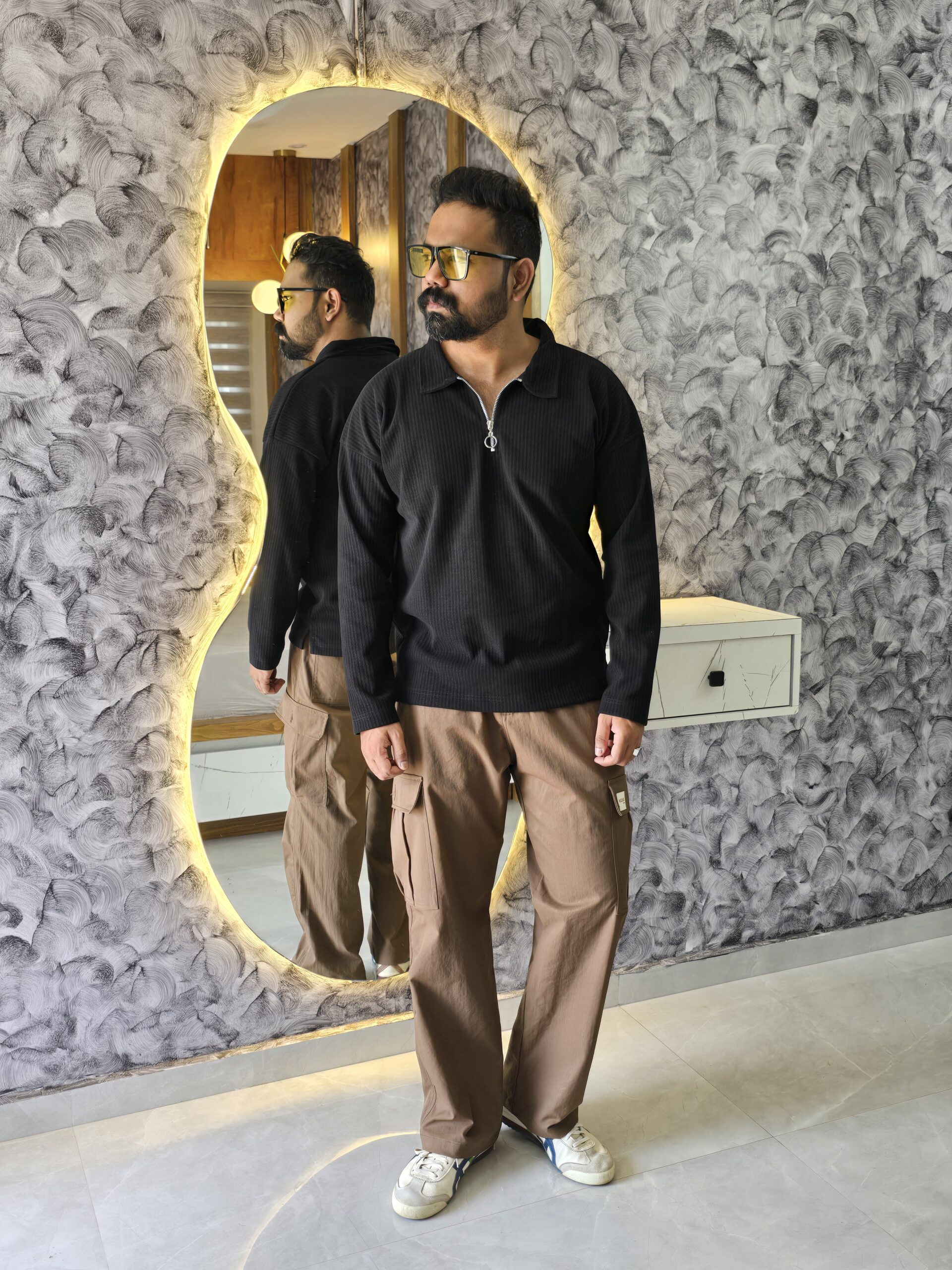 Black Premium Imported Zipper Downshoulder T-shirt