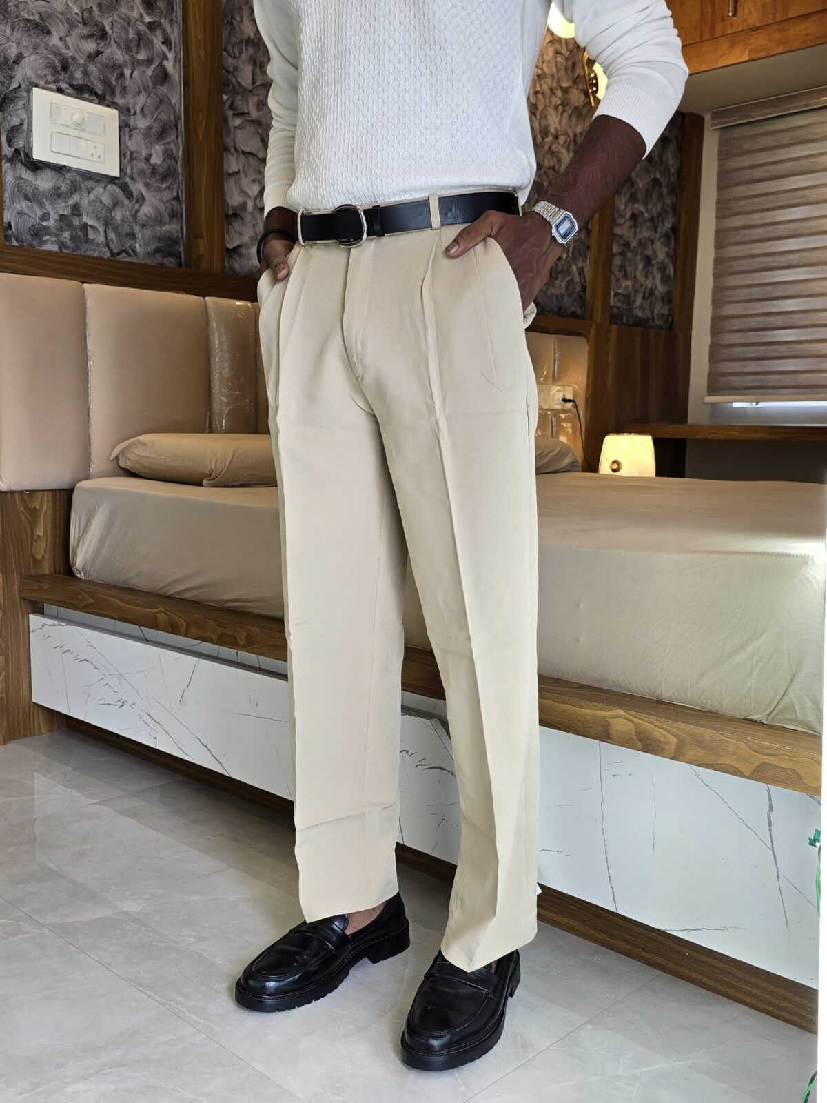 Beige Straight leg korean pants