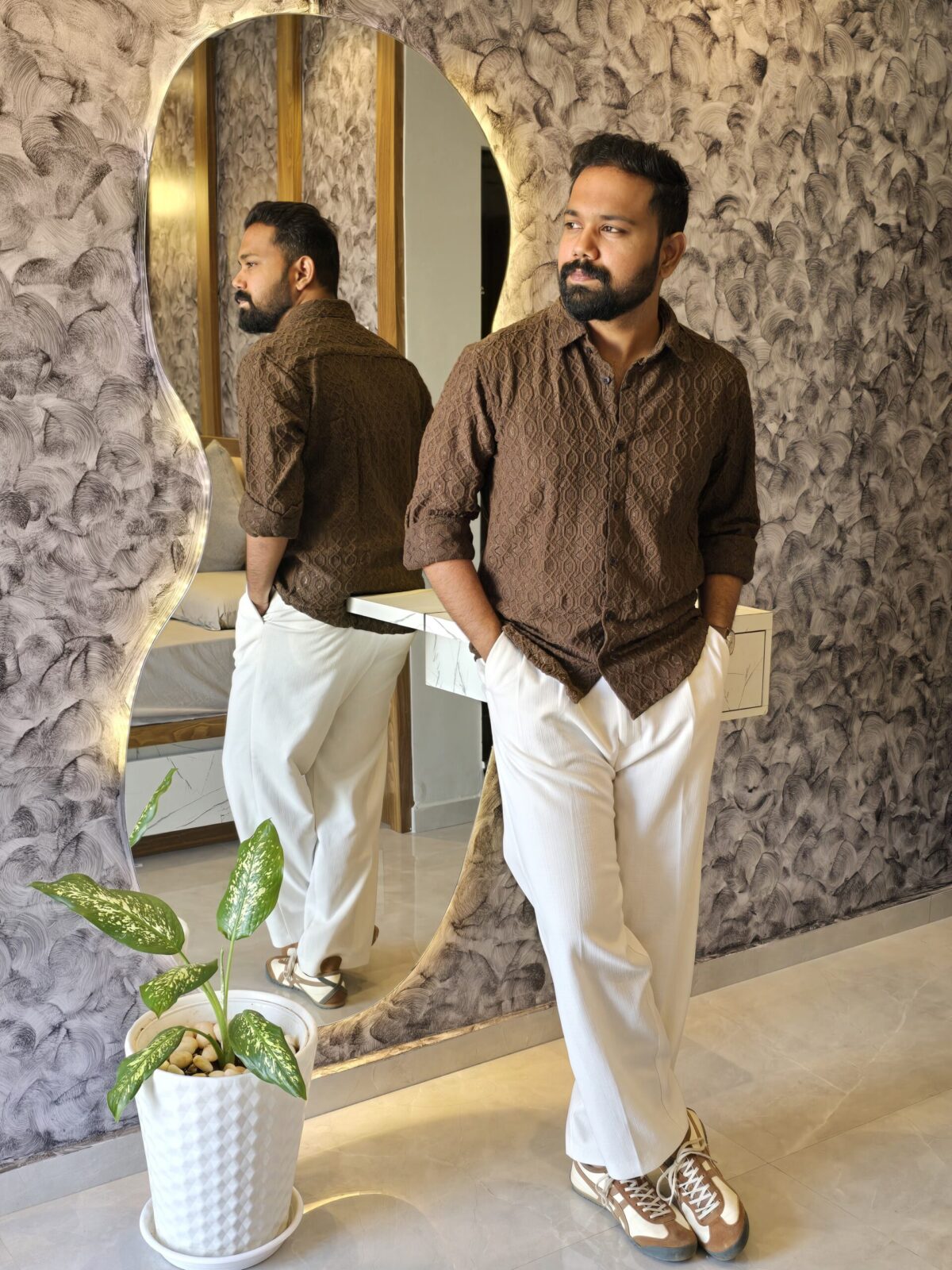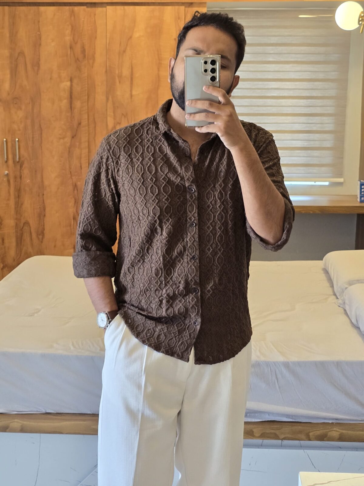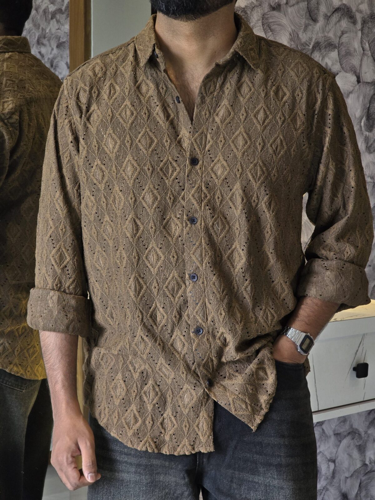 Brown Premium Crochet Shirt – Rustic Elegance