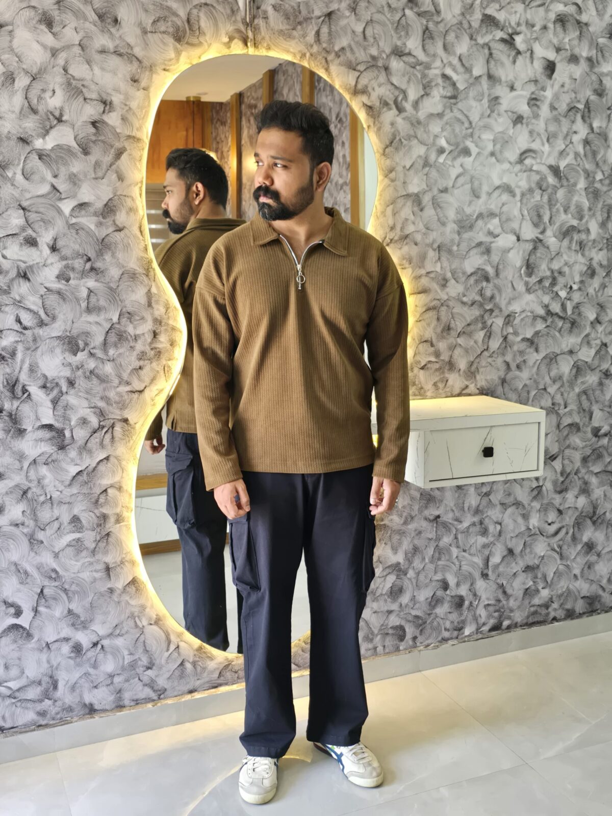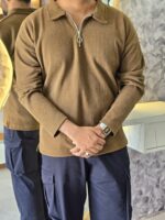 Brown Premium Imported Zipper Downshoulder T-shirt