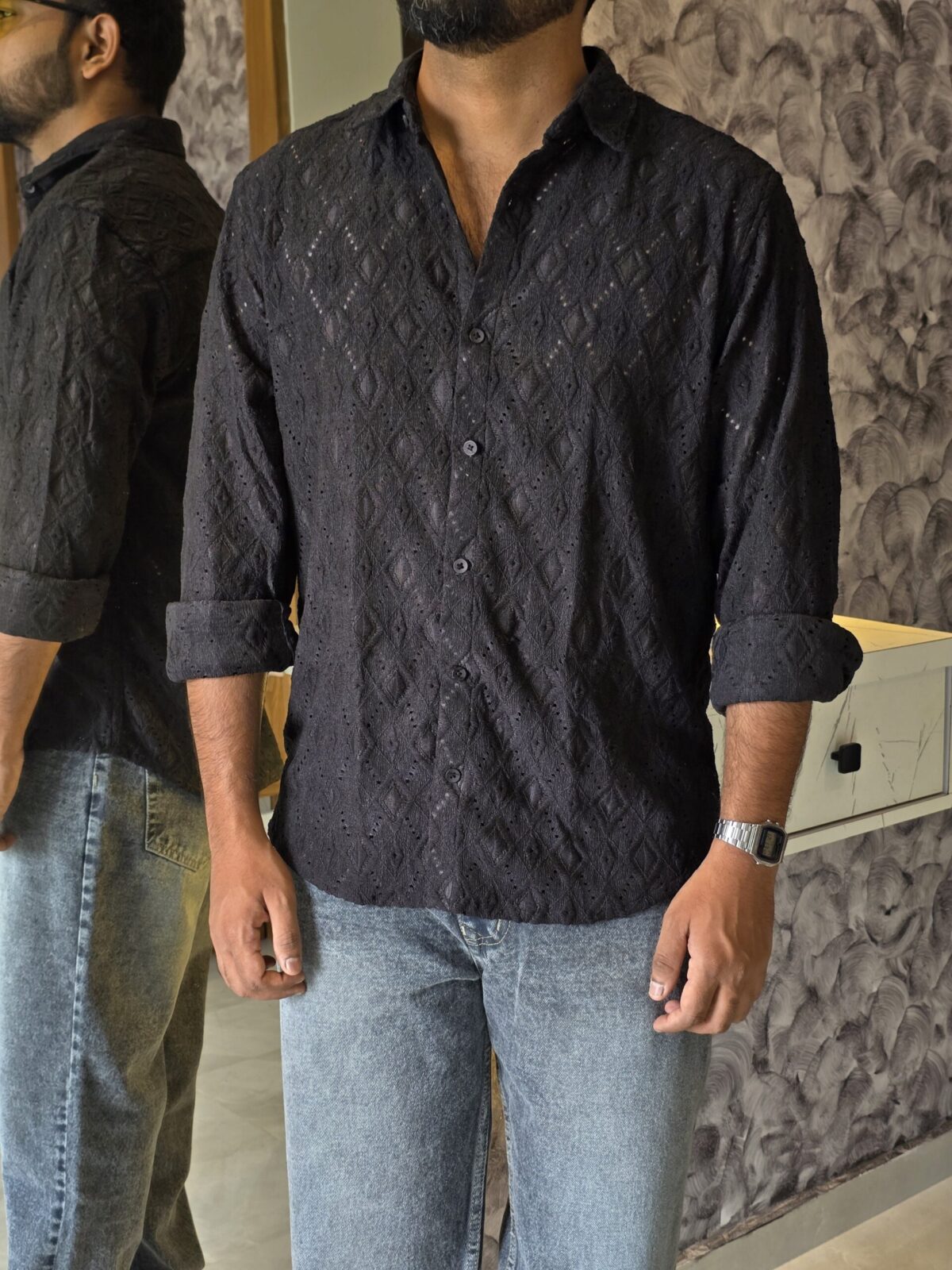 Elegant Black Crochet Shirt – Premium Artisanal Design