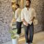 Blue Single button straight leg gurkha pant