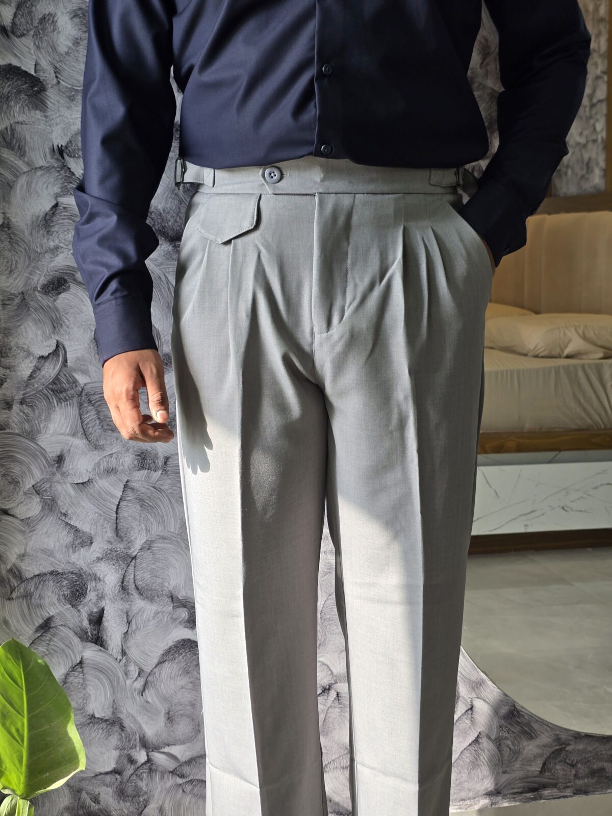 Grey Single button straight leg gurkha pant
