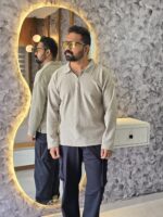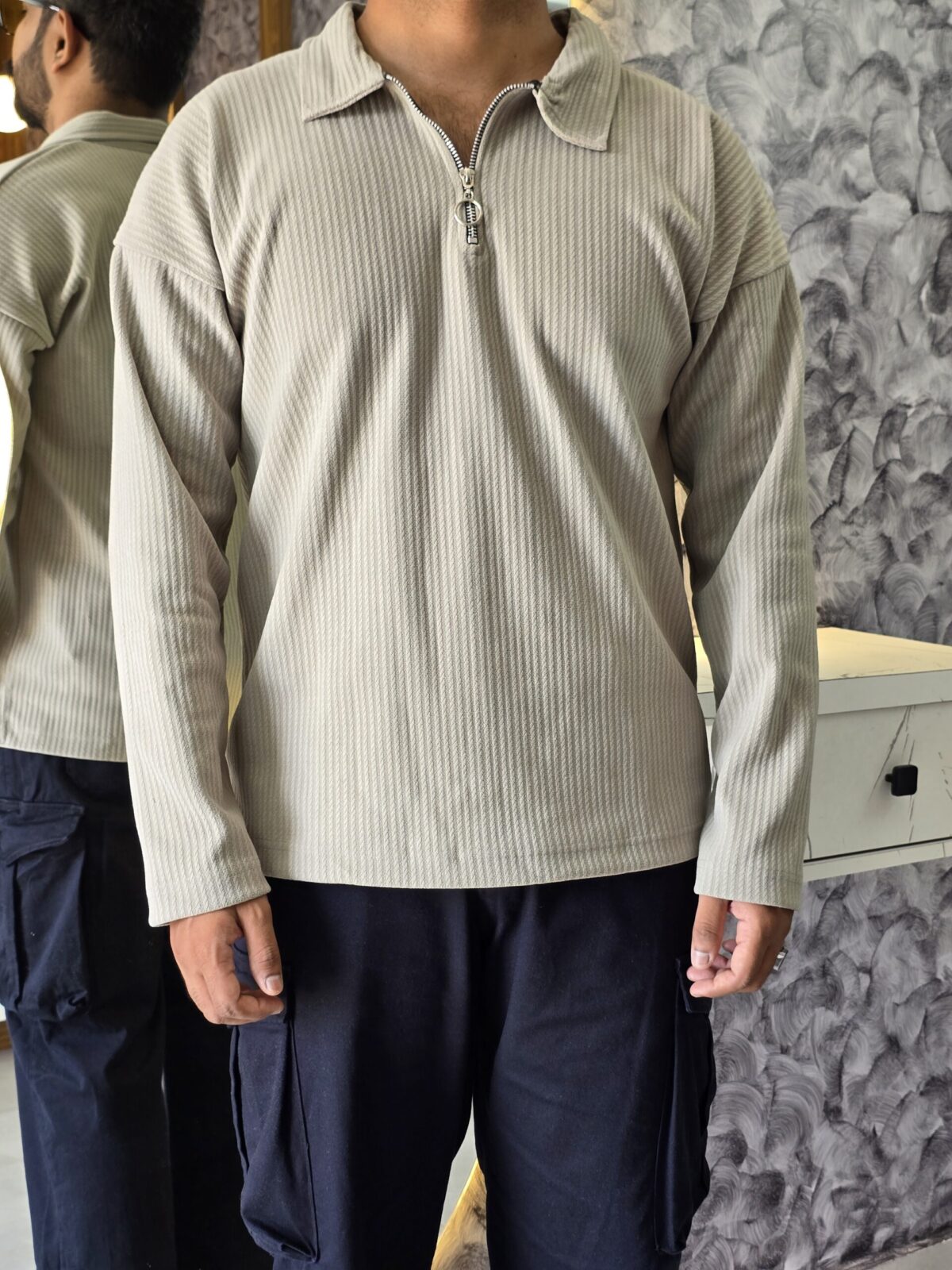 Light green Premium Imported Zipper Downshoulder T-shirt